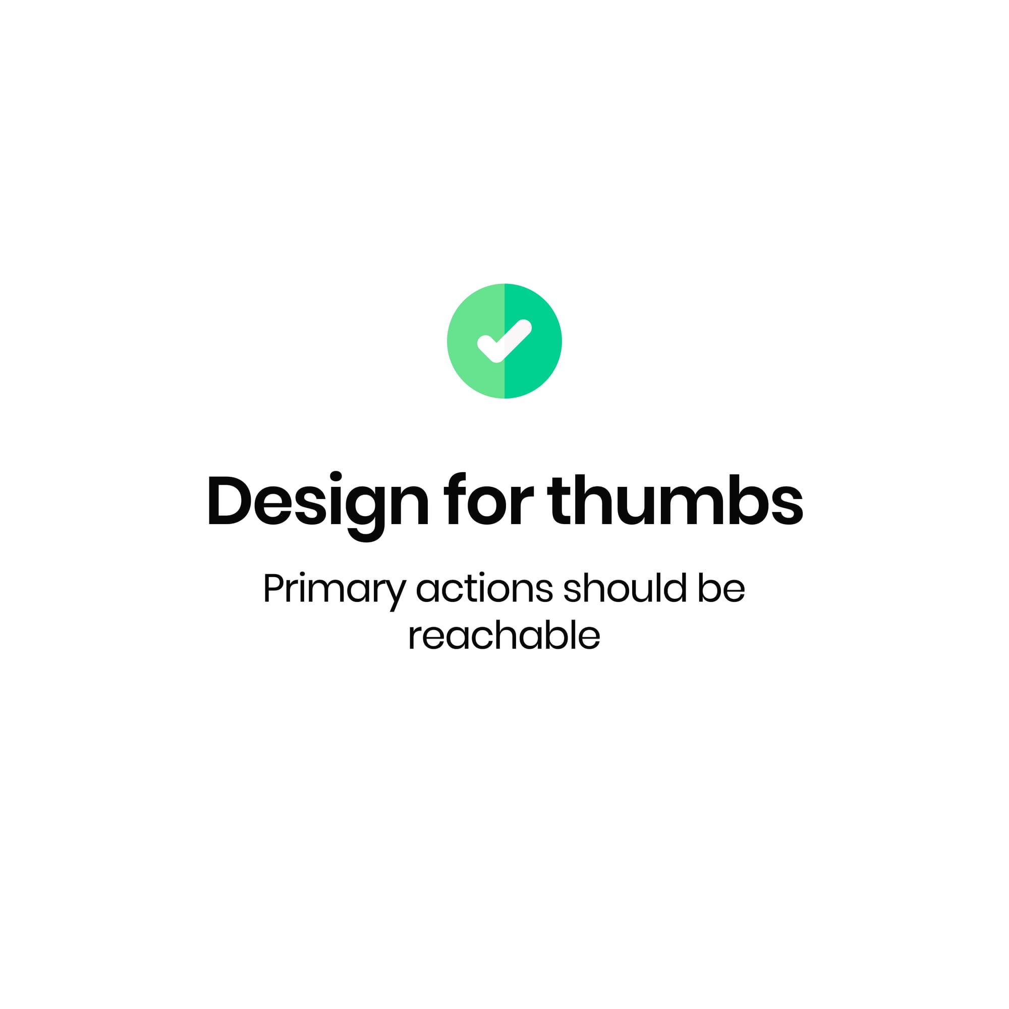 - The Principle: Primary actions should be easily reachable within the "thumb zone".