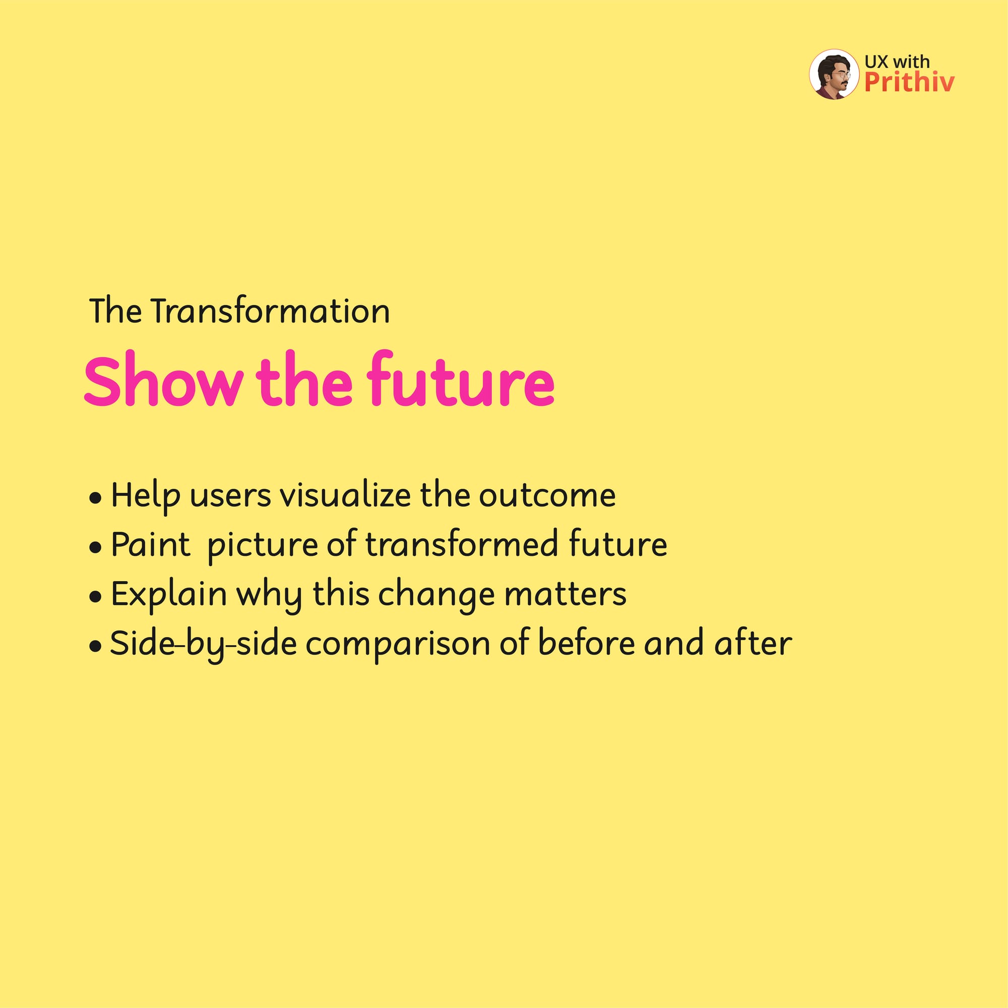Once the user feels the pain, you must present the desired future state—the transformation.