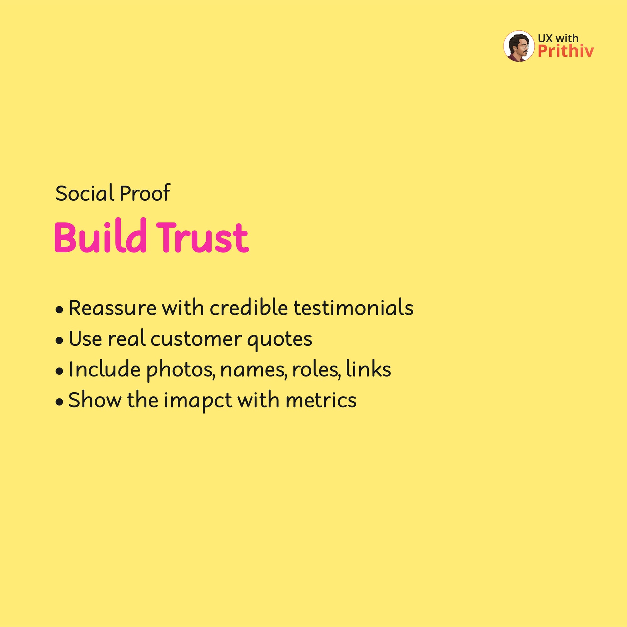 - Credibility: Reassure users with credible testimonials and use real customer quotes.
