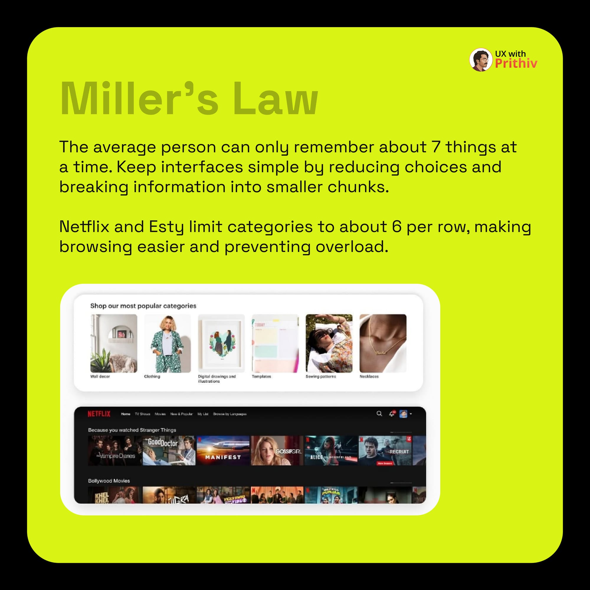 - In Practice: Streaming services like Netflix and e-commerce sites like Etsy limit categories to about six per row to prevent information overload, making browsing easier.