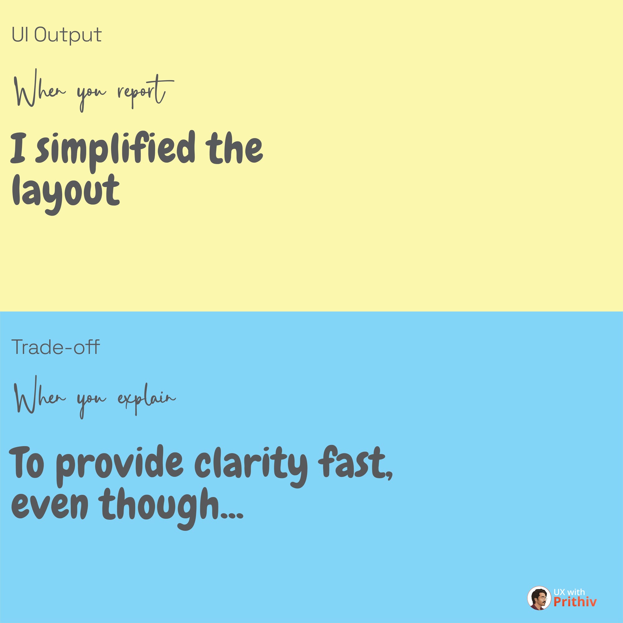 - You manage trade-offs: You can simplify a layout even if it means sacrificing some visual flair to provide clarity fast.